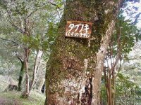 登山道脇には、朽ちた倒木もあちこちに見られる。樹齢250〜300年を過ぎると、枯れはてやがて倒木となる。倒木ができるとポカッ−と穴があいたように明るくなる。日ざしが幼木を育て始めるのだ。森林のサイクルが見て取れる貴重な地域でもある。